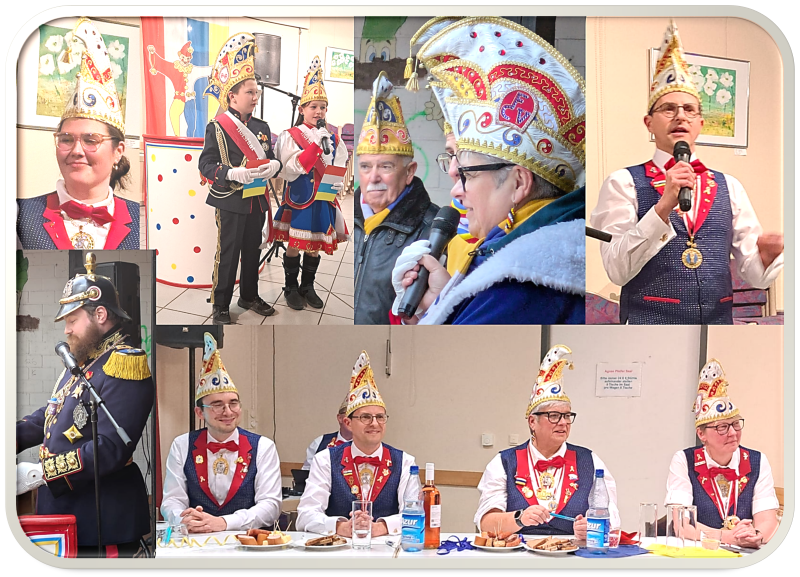 Eine Abordnung des Hofstaates von Zugprinzessin Luisa I. war ebenfalls vor Ort und überbrachte die Grüße der Prinzessin. Mit dem Narrenmanifest wurden alle Anwesenden durch Uwe Greiner feierlich auf die neue Kampagne eingeschworen. Für beste Stimmung sorgte Tim Theobald, der mit dem Finther Fassnachtslied und weiteren bekannten Stücken schnell für Mitsingen und Schunkeln sorgte. 🎶🥳